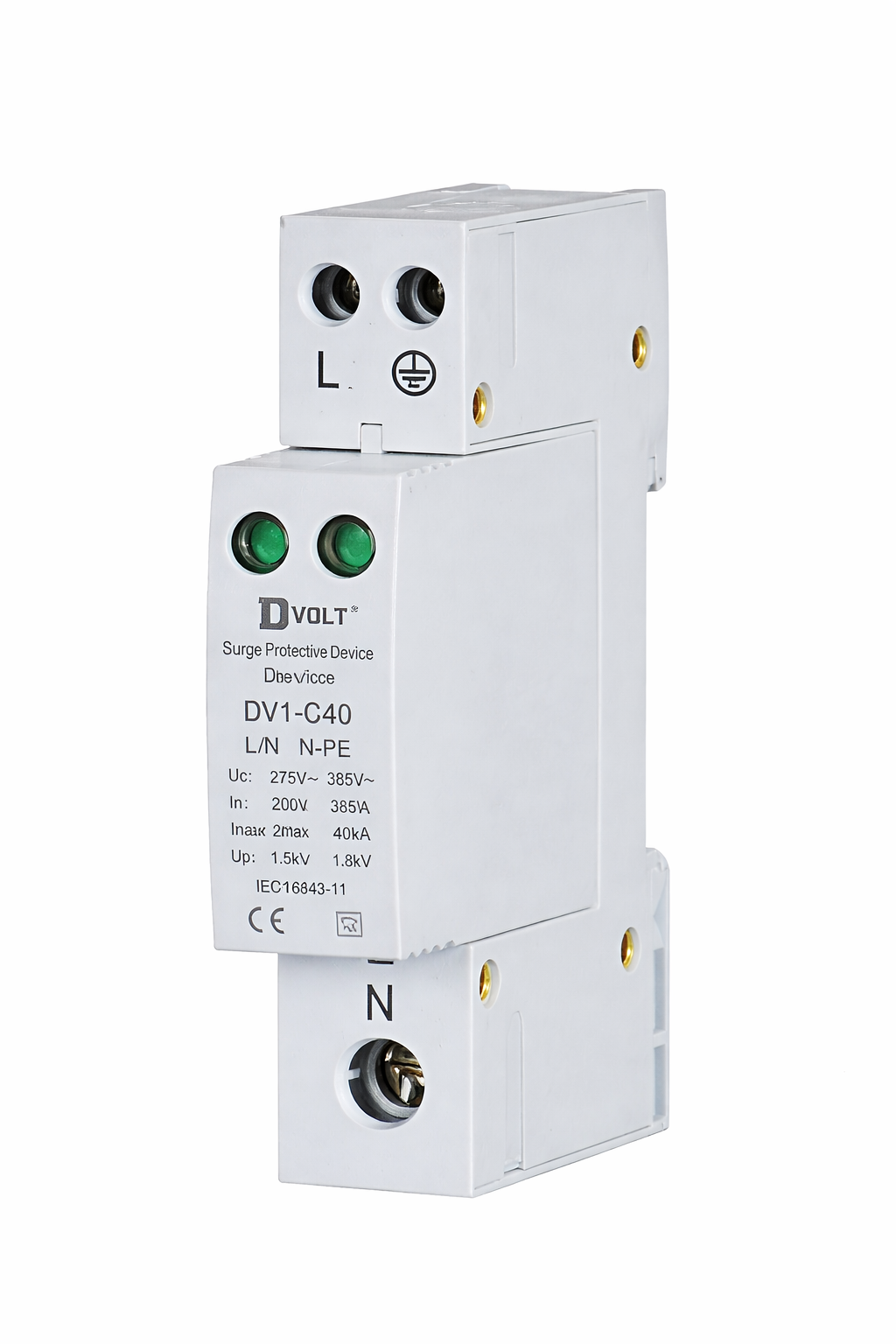 Compliant with IEC/EN 61643-11 and classified as Class 1+2 / Type 1+2, the DV1-C40M/1(S)+1 is ideal for industrial panels, commercial buildings, telecom systems, and infrastructure power networks requiring compact, serviceable surge protection.